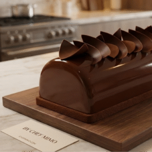 The ends of a Yule log can look messy if not trimmed.- The Hack: After glazing and chilling the log, slice off a thin layer (0.5cm) from both ends using a knife dipped in hot water and wiped dry. This reveals the beautiful layers inside (the "cut") and removes the uneven glaze drips at the ends. Place chocolate squares (or "embouts de bûche") on these ends to hide the cut if preferred.