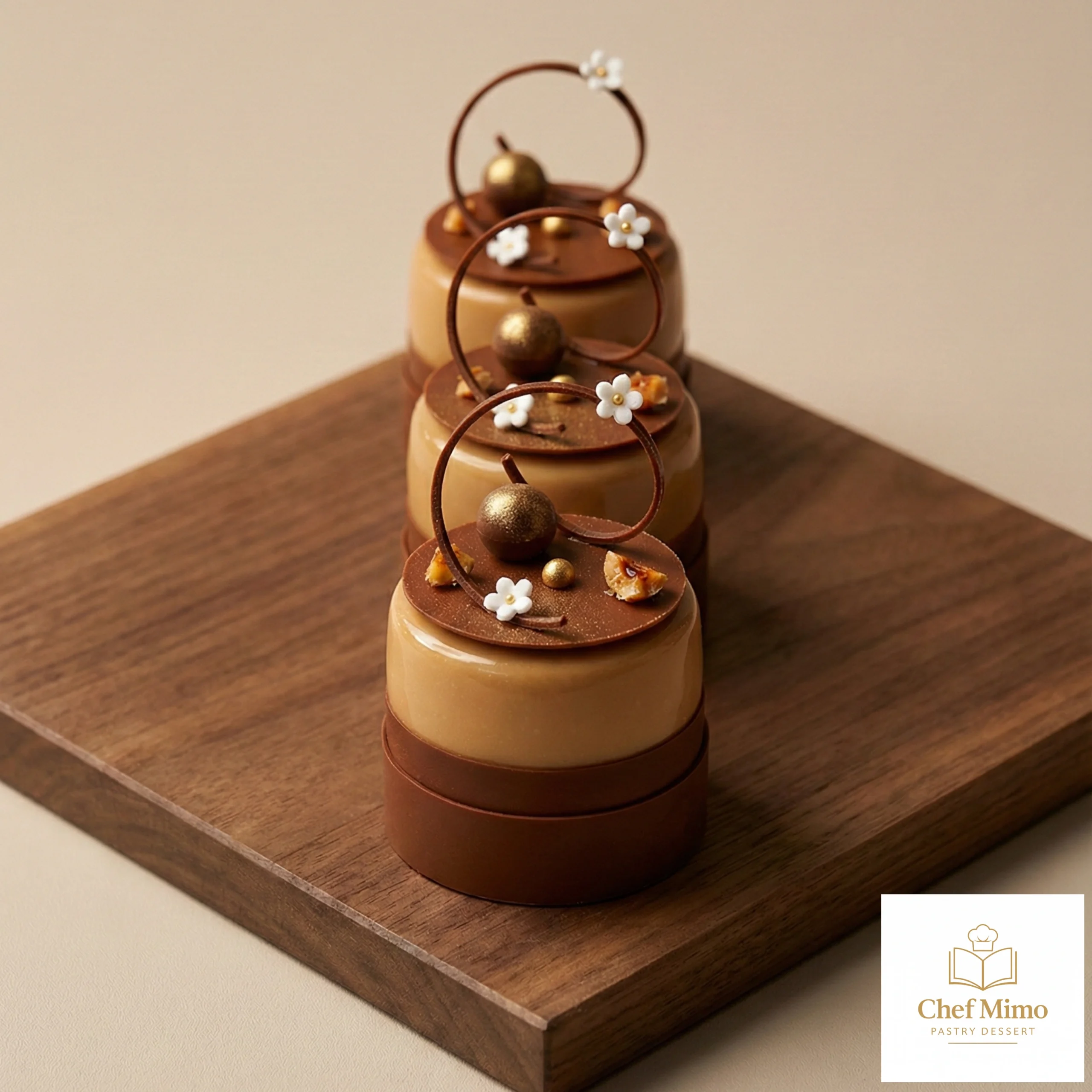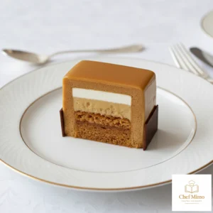 A luxurious French mousse cake layered with chai-spice cake, gingerbread crunch, silky chai ganache, marshmallow fluff, and a stunning caramel mirror glaze. Every bite tastes like warm chai latte wrapped in high-end patisserie. This is the kind of dessert you try once… and never forget.
