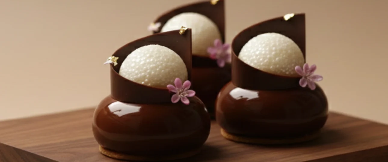 Elegant small cakes offering the perfect balance between rich chocolate and fresh raspberry, featuring a layered brownie, crunchy praliné, and silky cremeux. Amount: 8 Cakes Target Mold Size: 4 cm diameter insert molds and 6.5 cm diameter outer molds. DAY ONE: Component Preparation (Internal Inserts) 1) Brownie with Dark Chocolate and Milk Chocolate (Base Layer)...