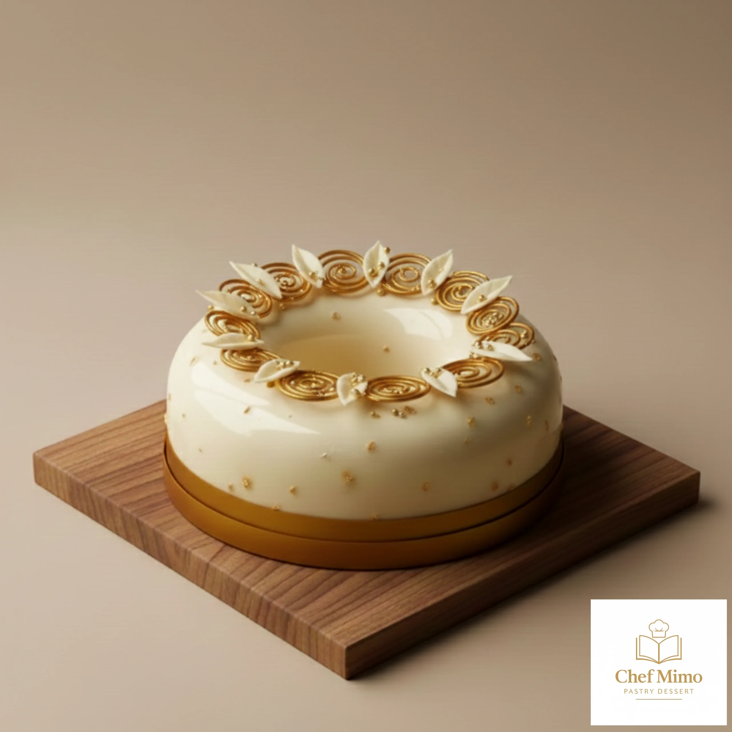 - Final Garnish: Decorate with small gold flakes, securing them with a little glucose syrup.