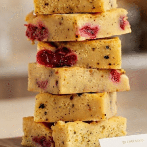 We use fresh/canned peaches and raspberries.- The Science: Fruit releases water as it cooks. In a dense batter like this, that water can create soggy pockets. However, the high sugar content in the batter creates osmotic pressure, drawing some water out of the fruit early in the baking process, which then evaporates or emulsifies into the batter, creating a custardy texture around the fruit pieces.
